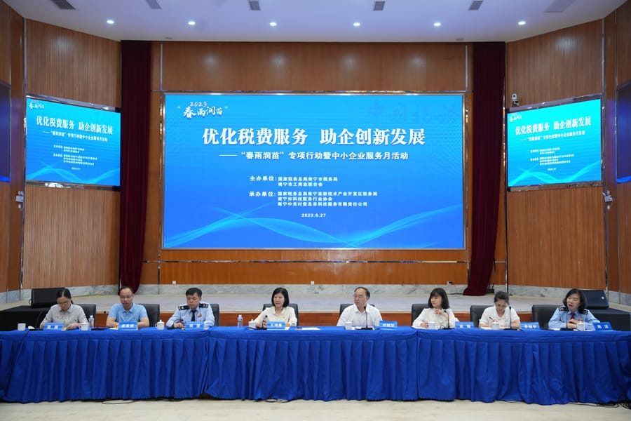 近日,国家税务总局南宁市税务局协同南宁市工商业联合会开展2023年助力小微经营主体发展“春雨润苗”专项行动暨中小企业服务月”活动,将服务触角对准中小微企业主体的急难愁盼,以源源不断的税惠“活水”润泽中小微企业茁壮成长。