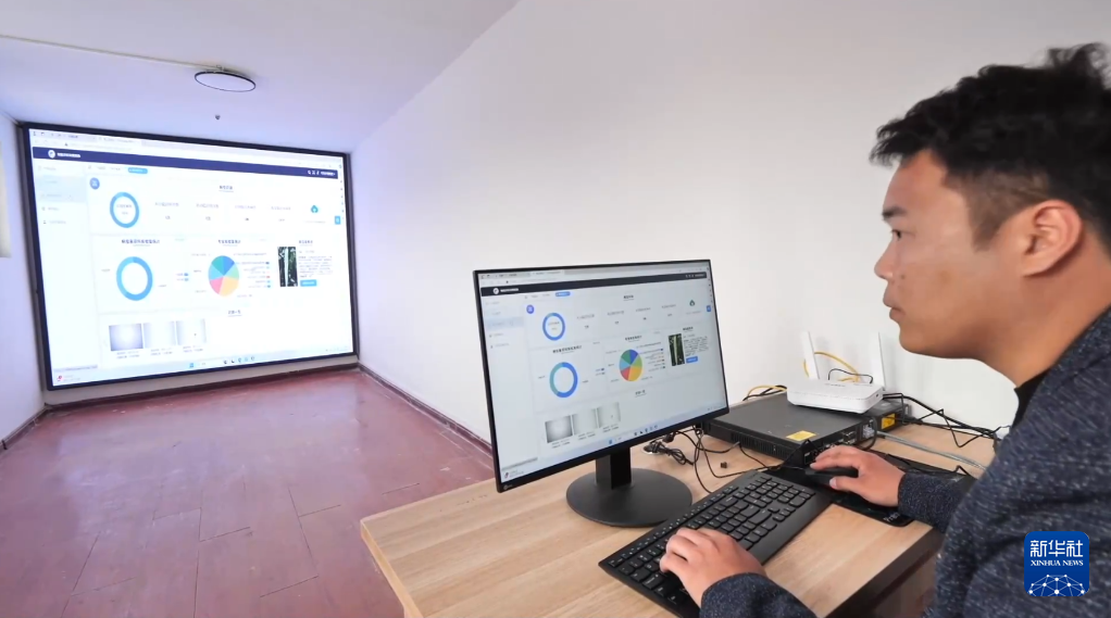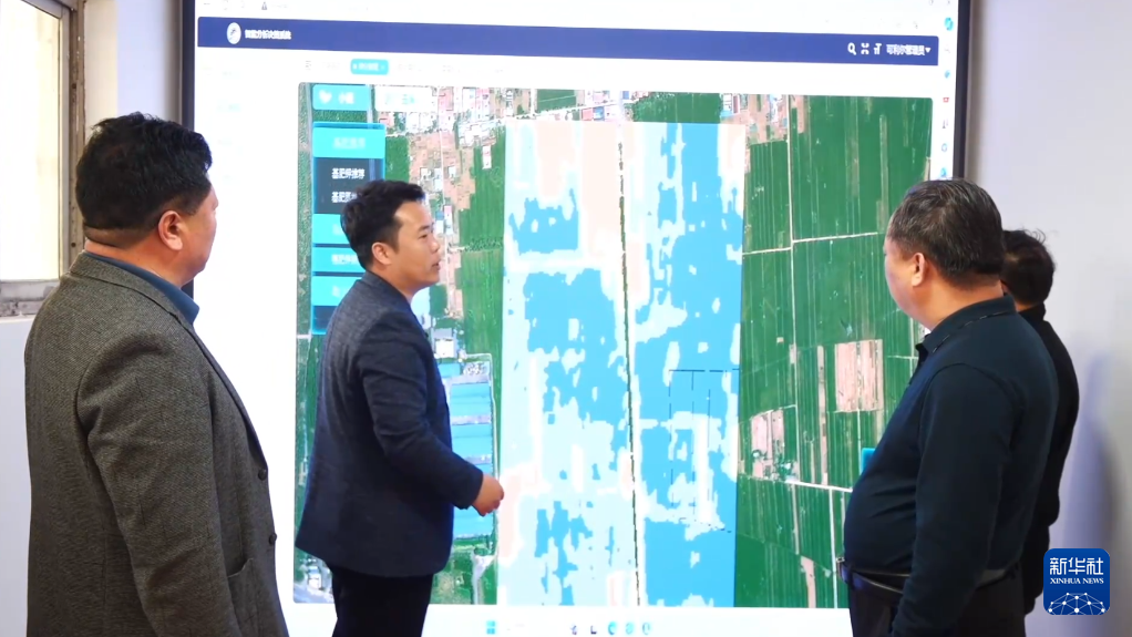 杜晓义通过网络对种植的1000亩小麦进行生产管理。(视频截图)