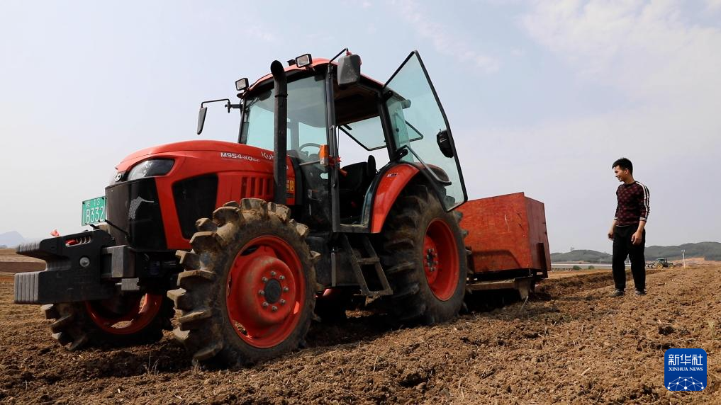 在广西来宾市兴宾区凤凰镇的上千亩蔗地里,“90后”“新农人”余才库奔忙于田间地头,安装了北斗导航系统的拖拉机正来回穿梭。