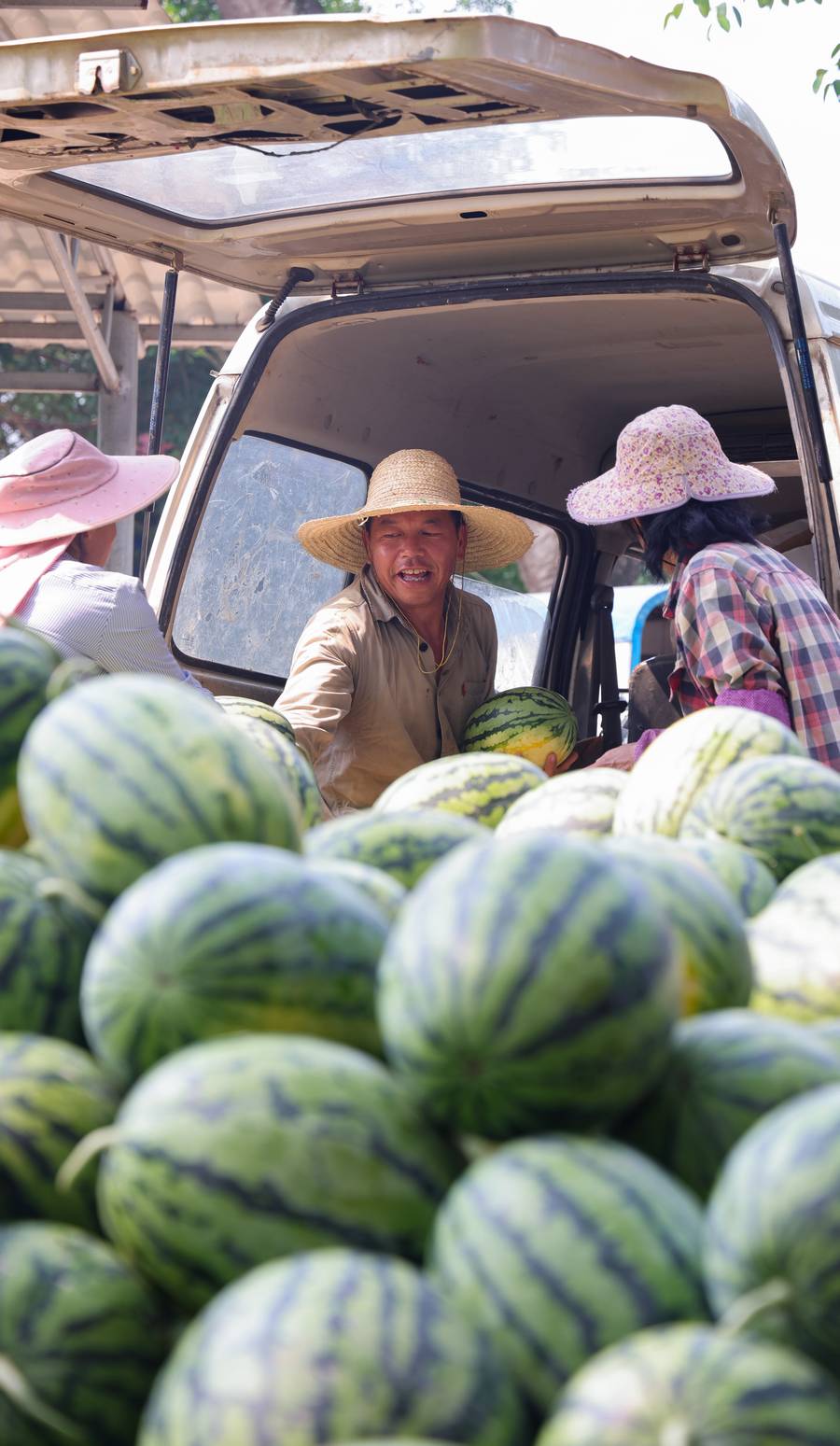 近日,广西南宁市江南区苏圩镇的西瓜成熟上市。据悉,第一批上市的西瓜品种是甜王、甘美4K、黑美人,主要销往南宁以及新疆、广东、河北、河南等地。苏圩西瓜上市早、甜度高、汁水多,瓜圆光润、肉厚脆甜、耐储存,受到市场的广泛好评,来自全国各地的收购商蜂拥下订单抢购。