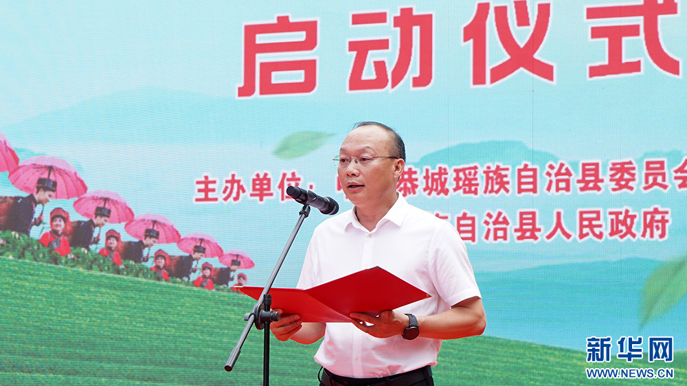 恭城瑶族自治县县长杨征山主持恭城油茶文化节系列活动启动仪式。新华网 刘君 摄