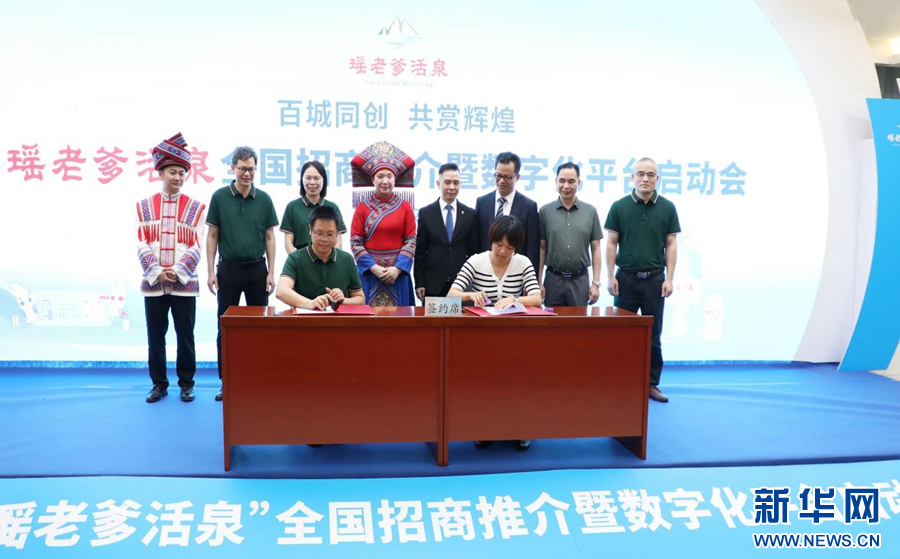 新华网南宁5月24日电 “好花一朵满园香,好酒一杯醉心房……”5月22日,嘹亮欢快的山歌在广西来宾市融媒体中心会议室里唱响,矿泉水品牌“瑶老爹活泉”全国招商推介暨数字化平台启动会在此举行,来自全国多地的商界精英齐聚一堂,共推“瑶老爹活泉”品牌创新发展和市场拓展。