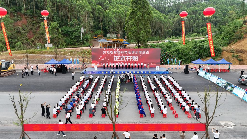 桂林市长塘水库开工建设现场。(自治区水利厅供图)