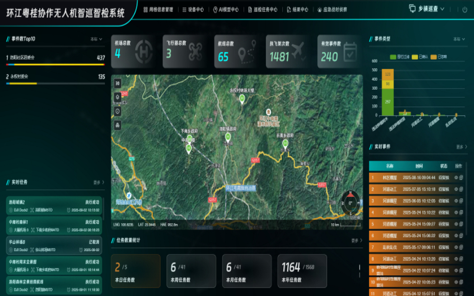 2025年,为深化粤桂协作成果,环江新增4套无人机空港设备,在县城、思恩、长美、下南等多地完成布点,推动智巡系统从“试点突破”向“全域铺开”迈进。