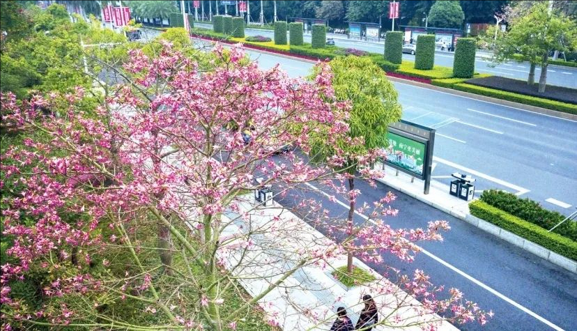 民族大道上的异木棉美丽盛放。 记者黄维业 摄