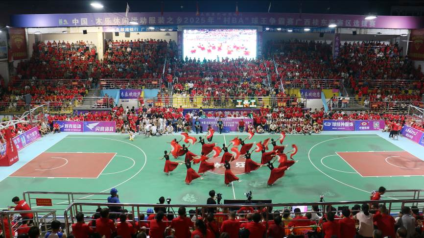 夏季的晚上,2025年“村BA”球王争霸赛广西桂东南赛区决赛在桂平市木乐镇上演,7000多名观众身着统一亮色运动服,将看台化为跃动海洋。据赛事官方直播平台统计,线上观看量突破90万人次。现场还设置了美食、文旅、体育等多类产品的展销摊位,一场篮球嘉年华点燃观众的激情。