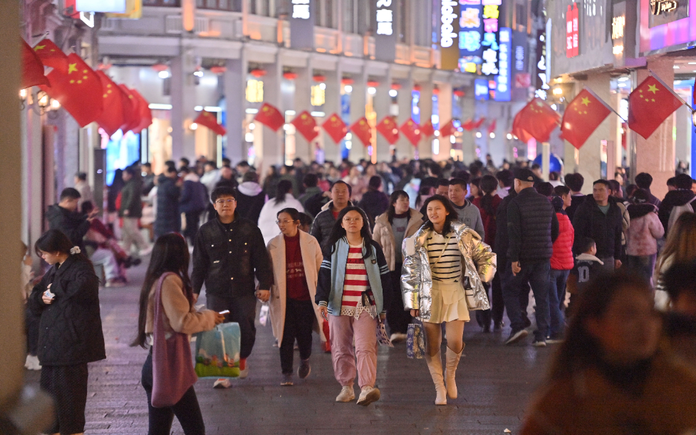 夜晚,人们在南宁市百盛步行街游玩、购物。新华社记者 黄孝邦 摄