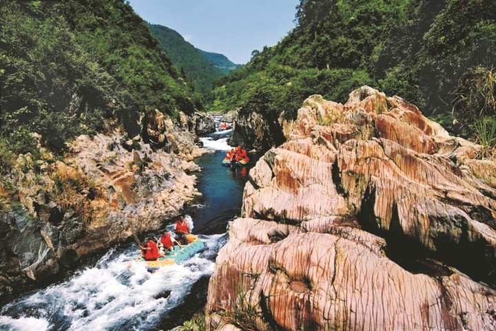 游客在资源县体验峡谷漂流。(资源县融媒体中心供图)