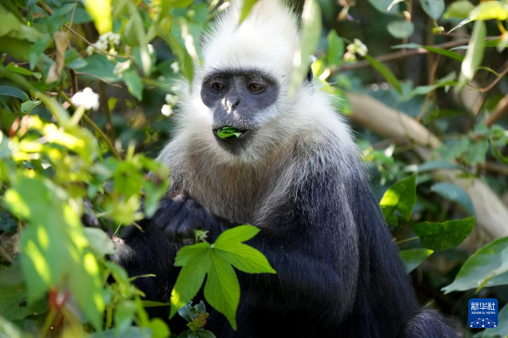 白头叶猴因头顶毛发呈白色、以树叶为食而得名。在广西崇左市江州区板利乡,绿意掩映的山林里,不时可见白头叶猴在嬉戏打闹、互相梳理毛发的场景。