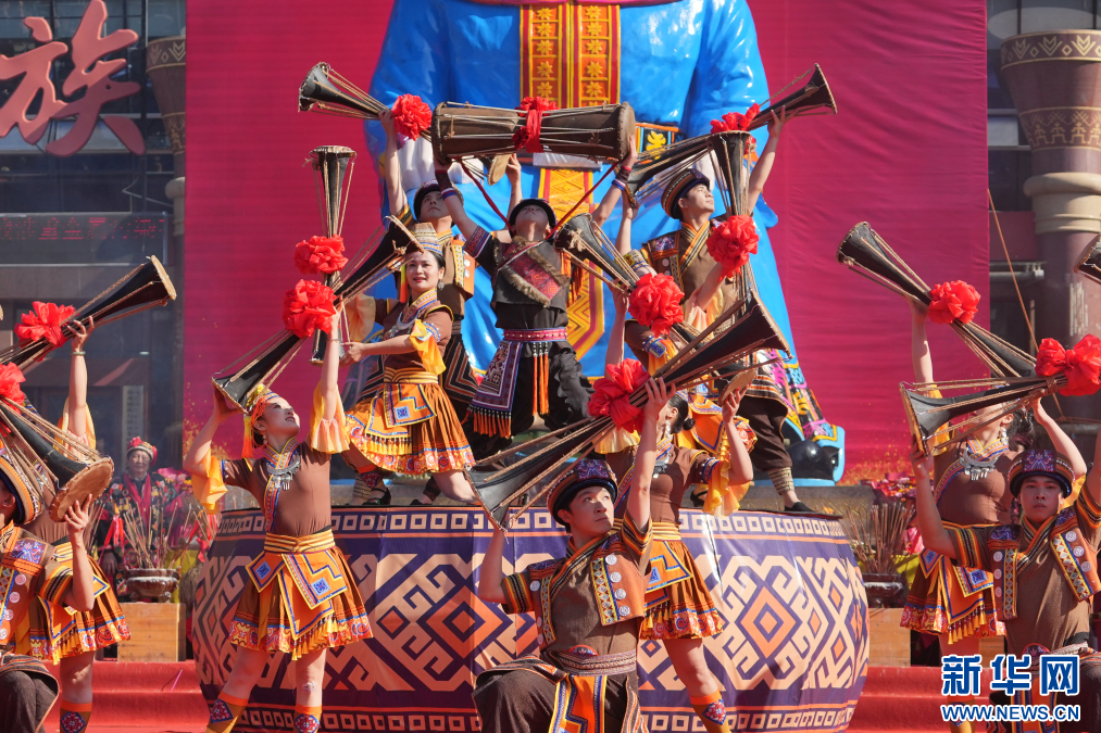 新华网南宁12月6日电(陈燕)旗幡飞舞,鼓乐齐鸣,瑶族同胞们载歌载舞,在欢歌笑语里共话民族团结……12月6日,2025年金秀盘王节开幕式暨祈福盛典在金秀瑶族自治县瑶都广场举行,本次活动以“千年瑶韵 同心筑梦”为主题,内容丰富多元、亮点纷呈,吸引大批游客前来领略“世界瑶都”的魅力。