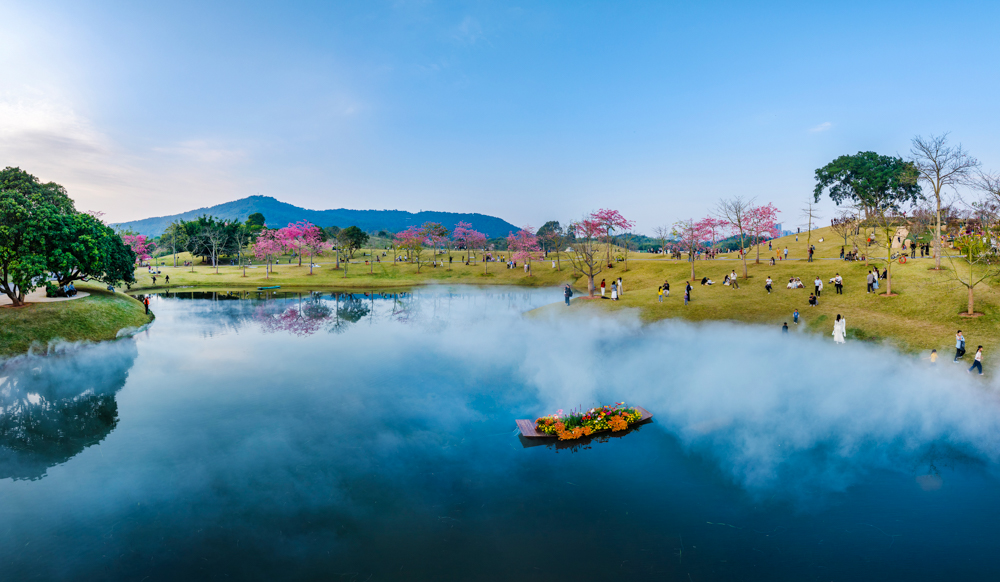 以上图片:2025年12月7日,游客在广西南宁市青秀山风景区丘石花园赏花游玩。(无人机照片)CICPHOTO/曾祥忠 摄