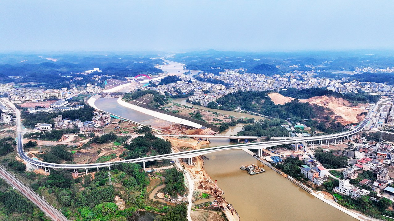 平陆运河沙坪河大桥位于钦州市灵山县沙坪镇沙坪河段。(平陆运河集团供图)
