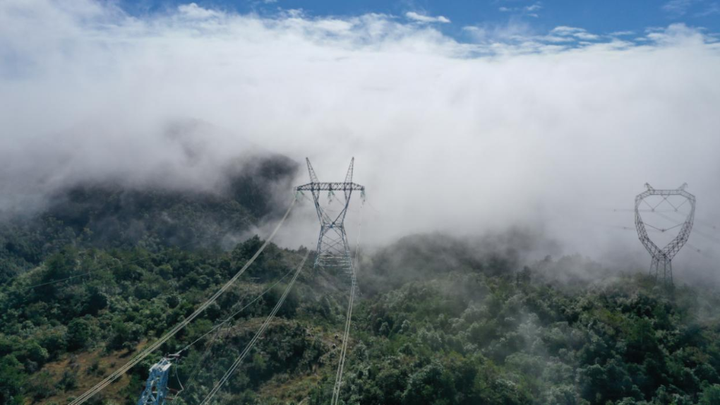 500千伏桂山甲线位于海拔超过千米的海洋山,山脉云雾缭绕,气候复杂多变。刘波洋 摄