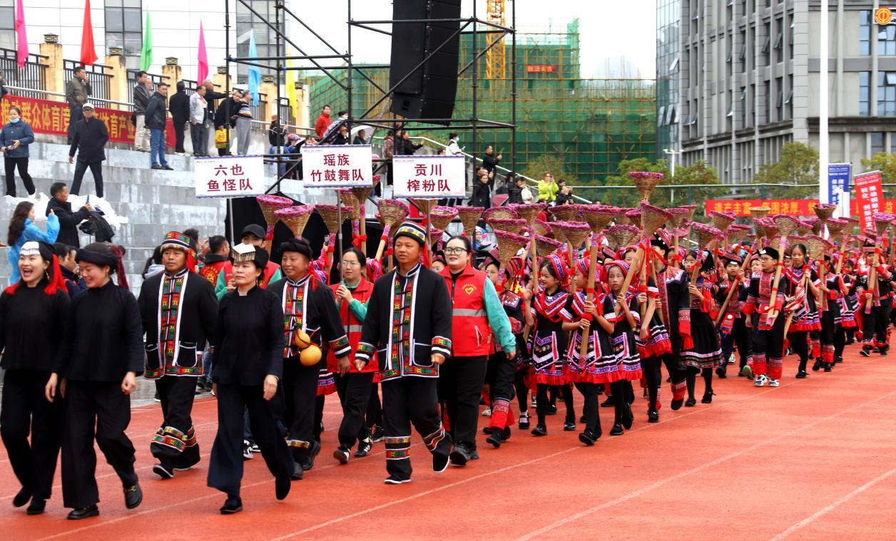 12月24日,以“全民健身 • 健康你我”为主题的河池市第八届运动会在大化瑶族自治县公共体育场开幕,来自全市11个县(区)以及市直机关共12个代表团的2000余名运动员将展开为期6天的角逐。本届运动会共设有篮球、足球、气排球、乒乓球、羽毛球、投绣球、田径等7类比赛项目。(黄晗 摄影报道)