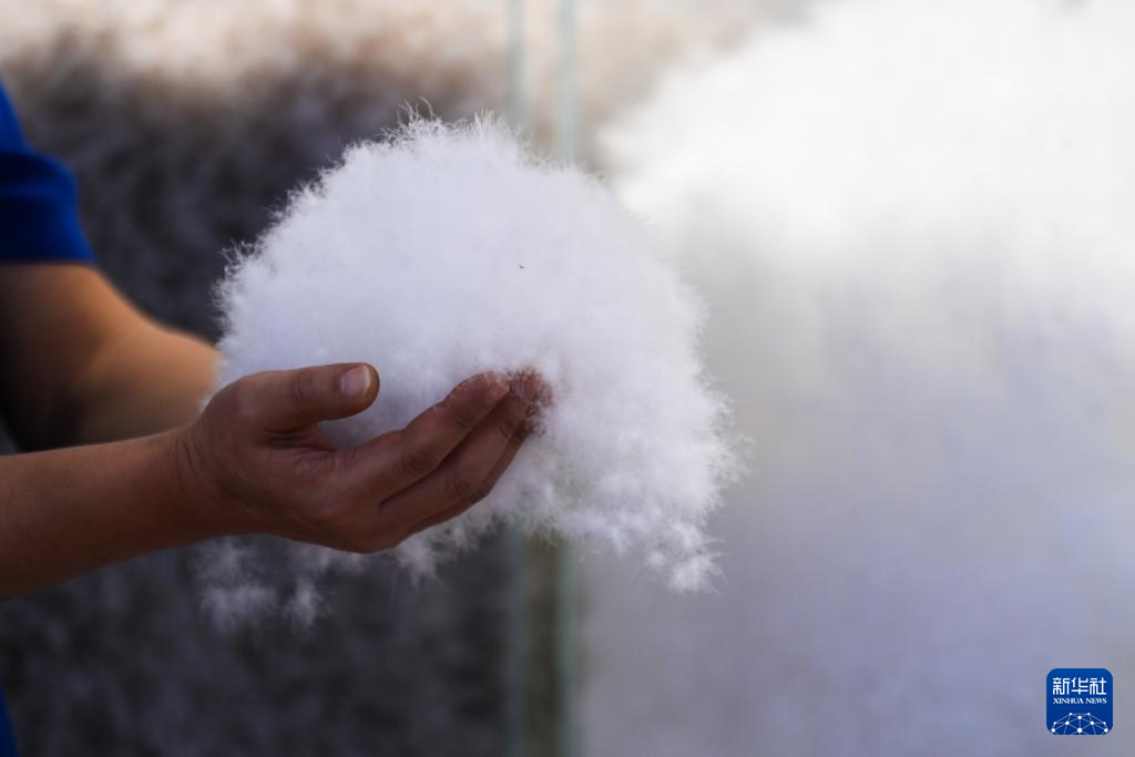 这是广西贵港市港南区桥圩镇产出的鸭绒(12月18日摄)。