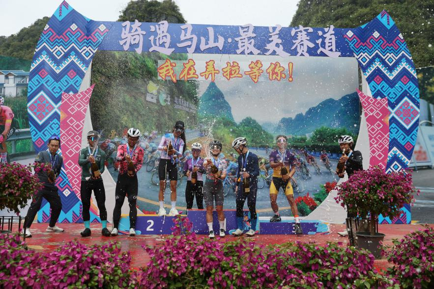 新华网南宁12月29日电 12月28日,2025年骑遇马山“弄拉皇后赛段”公路自行车挑战赛暨加方乡村嘉年华活动在广西马山县加方乡鸣枪开赛。来自全国各地的367名骑行爱好者在喀斯特地貌构筑的美丽赛道之上,展开一场速度与耐力的对决。