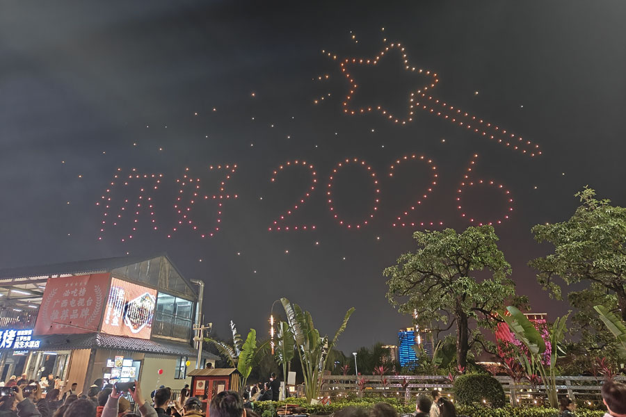 跨年活动现场上的无人机表演。(新华网发 张恬韵 摄)