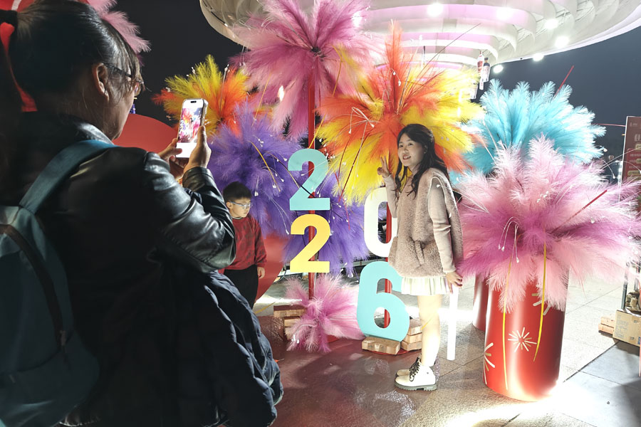市民在跨年活动现场打卡拍照。(新华网发 沈亦杨 摄)