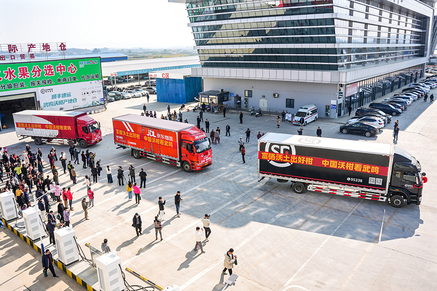 新华网南宁1月8日电 1月8日,以“中国沃柑看武鸣,沃的感觉真好”为主题的2025/2026年销售季武鸣沃柑开市活动在南宁北农产品交易中心举行。活动现场,国内外采购商集中签约,采购协议总额约9000万元;满载着新鲜武鸣沃柑的三辆货车鸣笛启程,一路奔赴俄罗斯、加拿大、印度三国,开启本销售季的海外征程。