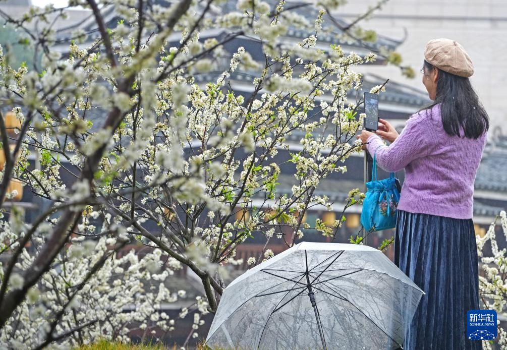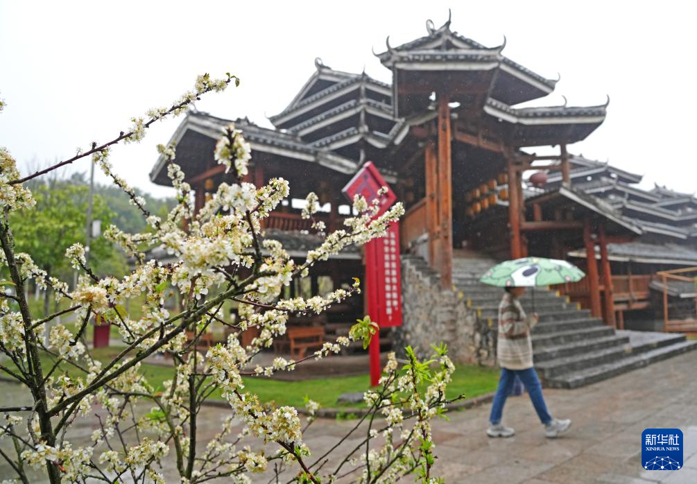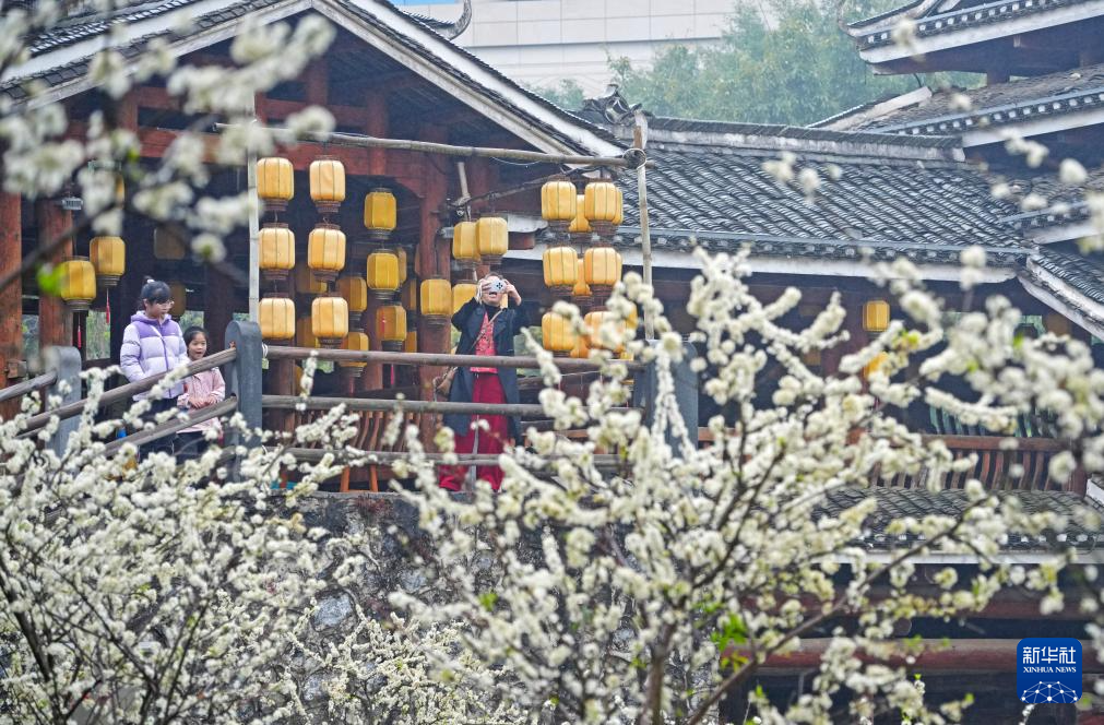 时下,位于南宁的广西民族村李花盛放。繁密的白色花簇与侗族风雨桥、木质吊脚楼等相映成趣,形成 “花影映古韵”的诗意画面。