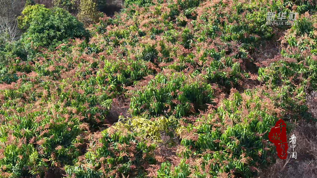 春光正好,广西壮族自治区百色市田阳区一芒果基地的7000亩芒果树迎来盛花期,漫山遍野繁花似锦,金黄花穗缀满枝头,芬芳弥漫,绘就一幅生机盎然的春日画卷。
