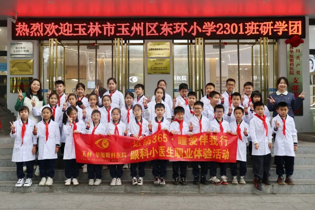 3月22日,玉林华厦眼科医院迎来东环小学2301班的学生,共同开展“眼科小医生”职业体验研学活动。活动旨在通过沉浸式实践,增强儿童青少年爱眼护眼意识,普及科学近视防控知识。