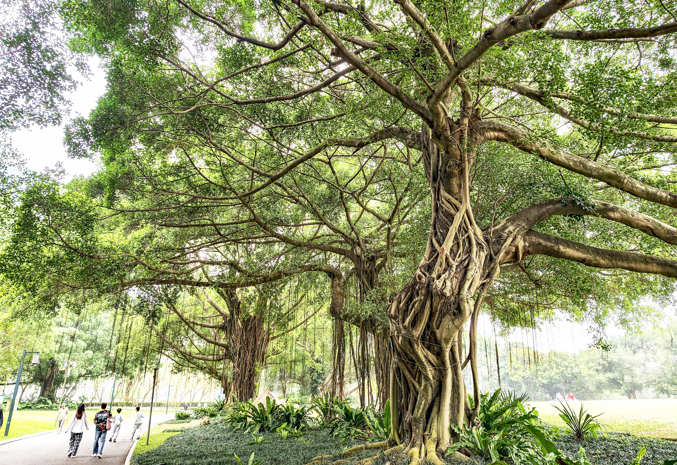人们在古树下漫步。记者韦峭 摄
