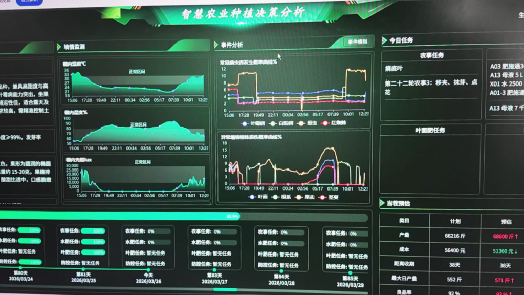 “基地大棚配备水帘风机、打肥机、水肥一体机等设备,通过光照采集和传感器系统,将温湿度、养分等数据传输至自主研发的农杺系统,为作物提供最优决策方案。”广西来宾新三农业科技有限公司生产技术主管廖朝苏说。公司定期培训技术人员,确保设备准确运行。项目采用长季节栽培模式,预计亩产果蔬约2万斤,基地年产值超4000万元,并带动当地200人就业。