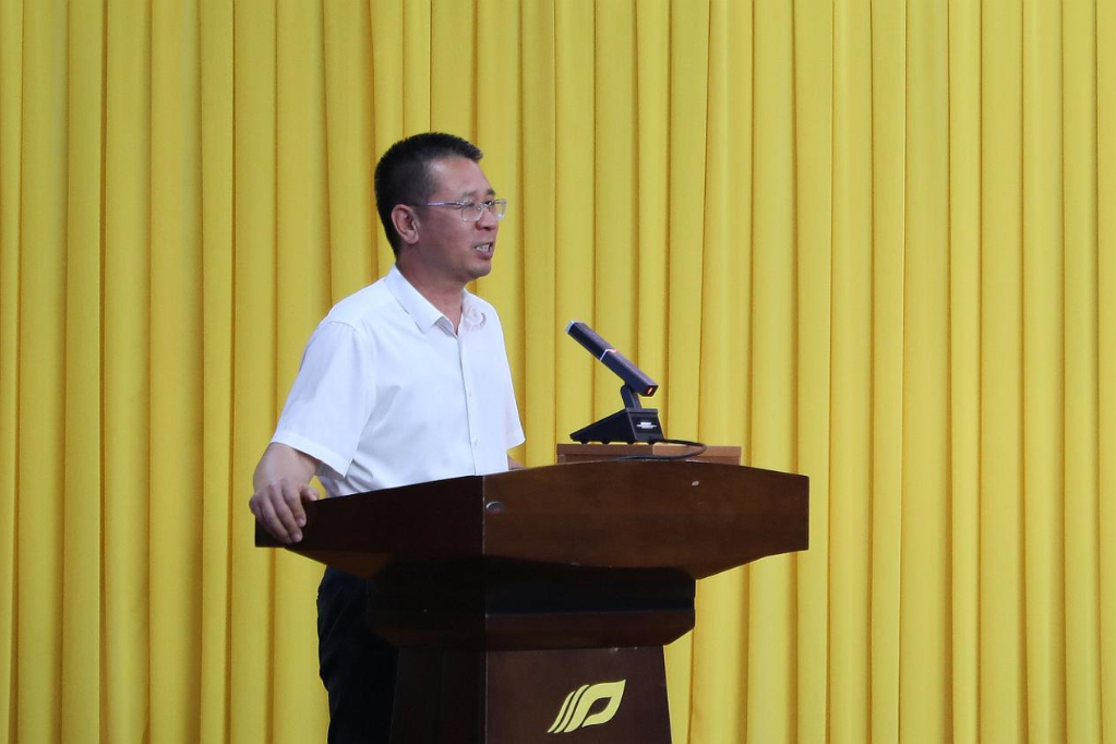 广西中医药大学图书馆馆长李欢澄介绍读书活动情况。