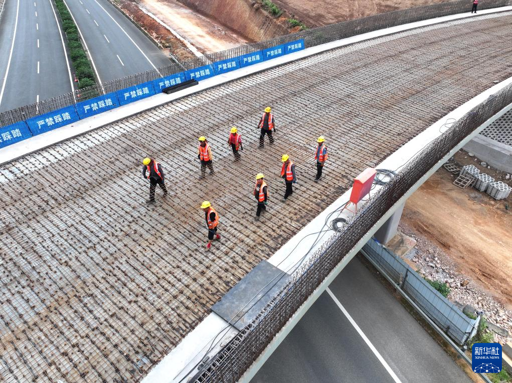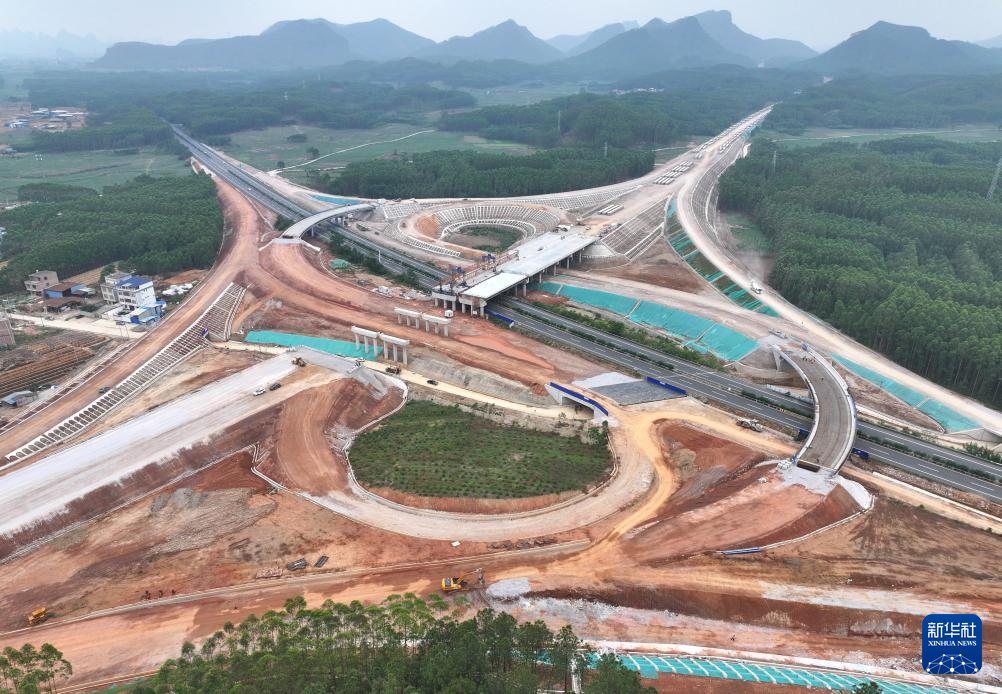 暮春时节,在广西柳覃高速公路建设工地,中铁二十局的建设者紧抓有利天气条件,加快推进工程建设。
