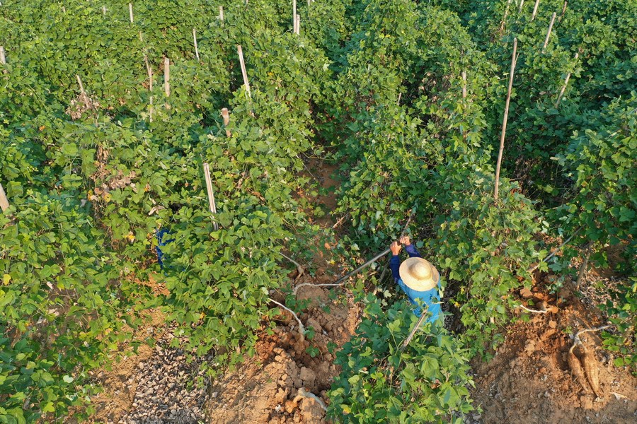 秋风爽,粉葛壮。眼下,藤县和平镇3.5万亩粉葛丰收在望,种植早葛的村民已开始陆续采收上市,抢占市场先机。据初步统计,今年全县5万亩粉葛产量将达10万吨,全产业产值超10亿元,成为当地村民群众的重要增收渠道。