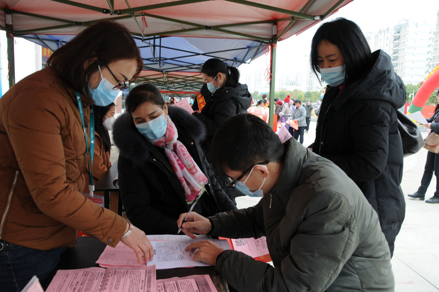 图为求职群众填写报名资料