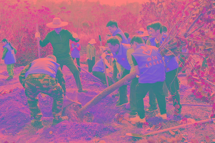 三月春风好时节,植树添绿正当时。近日,田阳区组织青年志愿者在狮子山公园义务植树,以实际行动践行绿水青山就是金山银山理念,为大地添一抹新绿,助力自治区文明城市创建。(黄颖 摄)