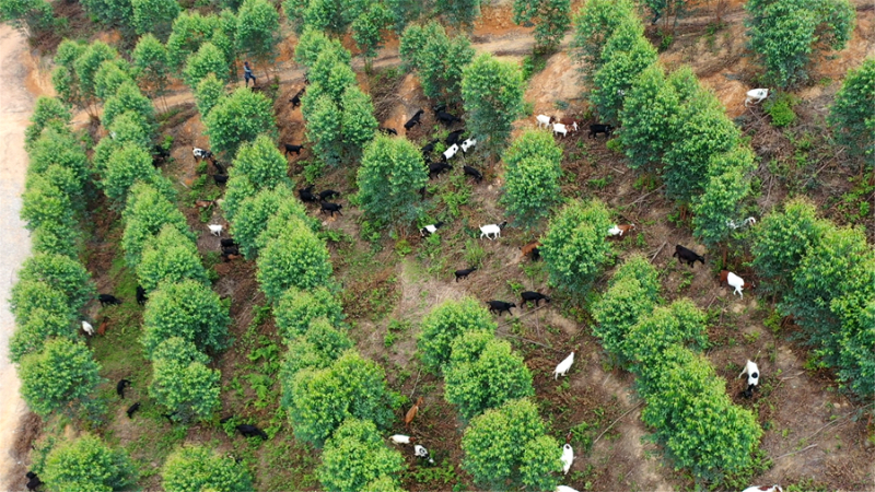 近日,记者在南宁市宾阳县鸣凤登生态农业科技有限公司的黑山羊养殖基地看到,一群毛色乌黑锃亮的黑山羊正在山间灌木、草丛中觅食,得天独厚的山林条件,不仅为这里的黑山羊饲养提供了良好的温湿度、水源和饲料来源,天然放养的方式也让山羊的肉质更加鲜美,受到不少外地客商的青睐。
