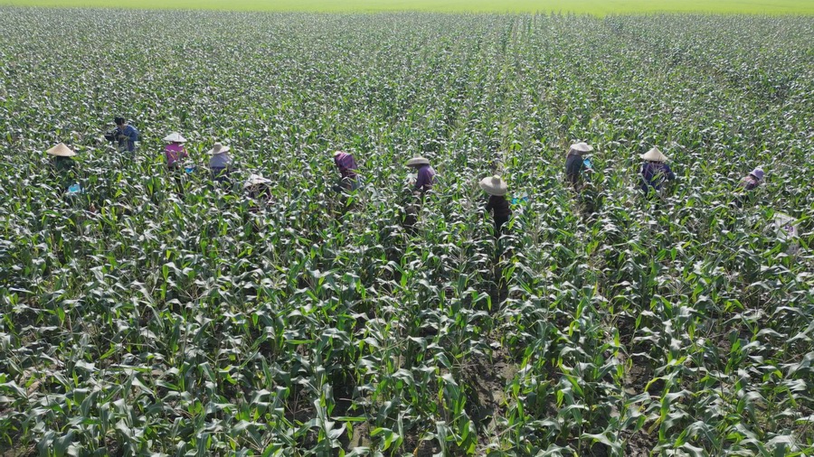 与此同时,在厚禄乡延寿村的黑糯玉米种植基地、新圭村的南瓜种植基地,村民们也正忙着采摘、装包、搬运。黑糯玉米种植户黄雁捷说道:今年种了200多亩,销量还可以,市场供不应求,还想着明年再扩张200亩左右。