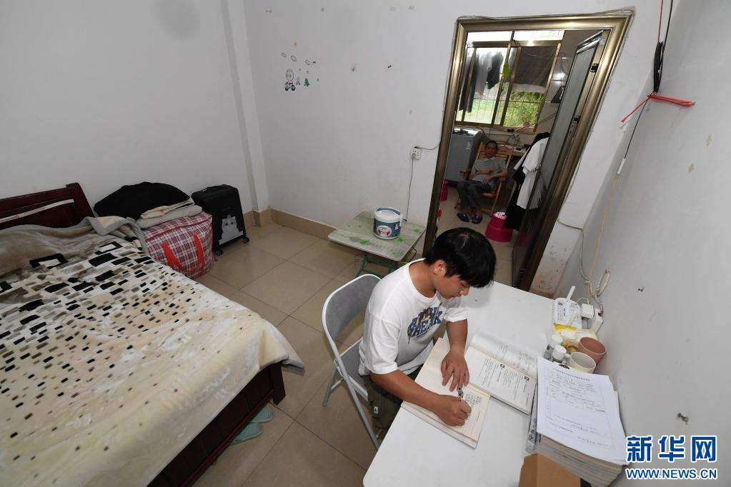 6月17日,在广西南宁,袁东旺在学校附近的出租房里学习。
