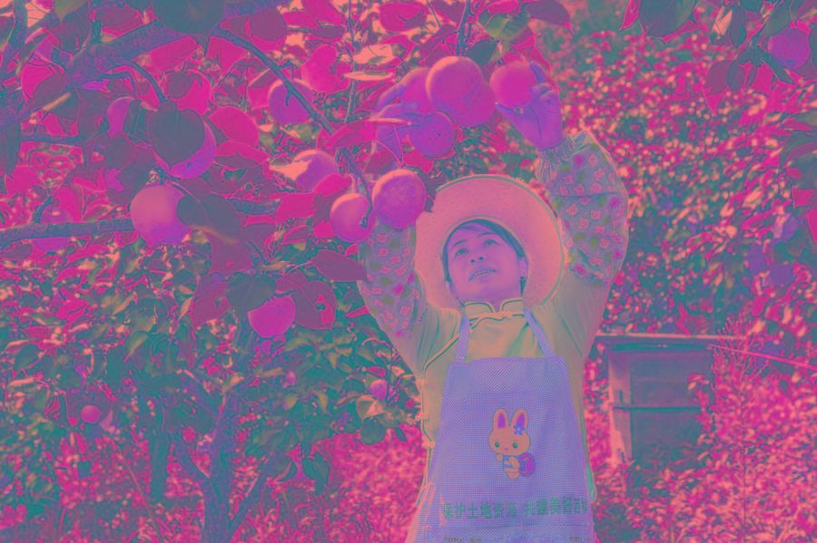 7月12日,西林县西平乡八桥村八桥屯村民在自家庭院里采摘成熟的桂花梨。