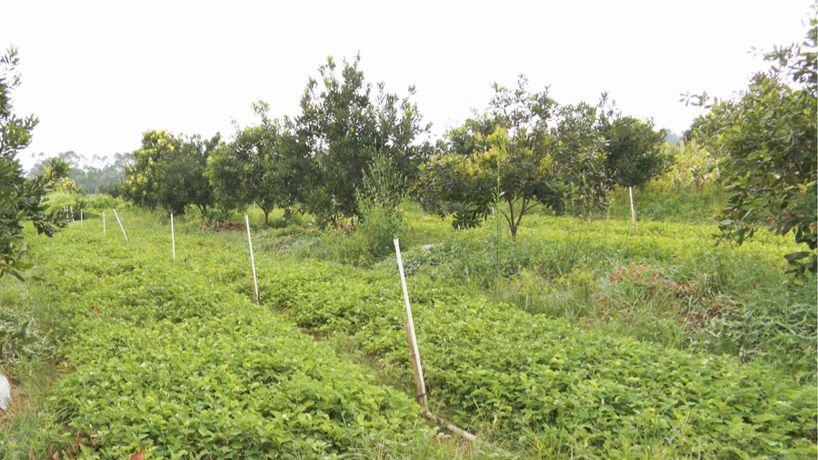 近日,在桂平南木镇上湾村澳洲夏威夷坚果基地,500多亩澳洲坚果树枝繁叶茂,果树开始结果。而套种的金钱草、红皮大肉南姜等中草药也为坚果基地增添了别样的生机。