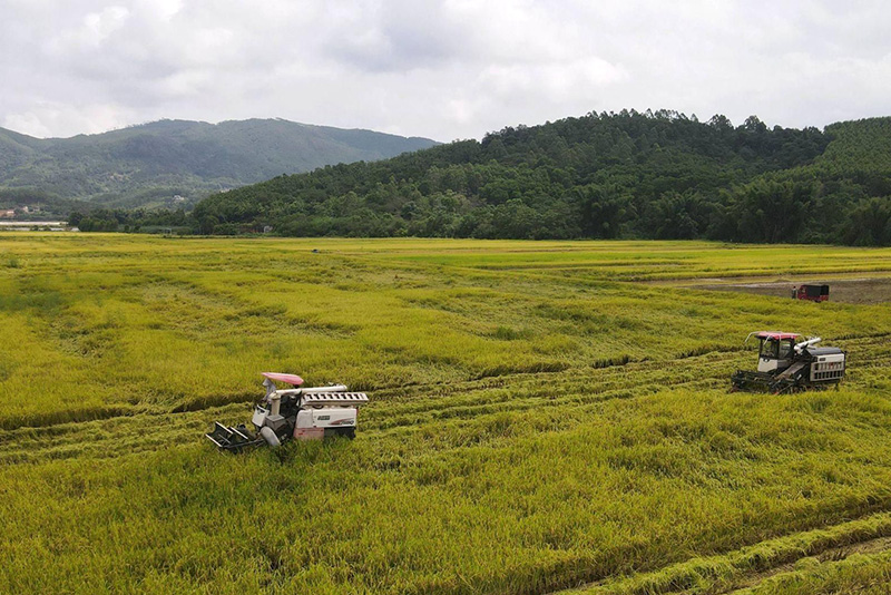 机械化作业加持耕种,直接造福受益的是百姓。“由于前不久受台风影响,那些倒伏的稻谷一泡水很快就会长芽,所以我们要力争把损失降到最低,抢抓时间收割成熟的稻谷。现在机械化作业用一台收割机15分钟可以收割一亩,今年一亩产量900斤左右。”力拓米业集团有限公司生产部经理韦柳红介绍,他们在稻田里装有智能检测设备,可以实时观察水稻情况,温度、湿度、虫害等都能实时监测。除此之外,顾客还可以通过扫描大米包装袋上的二维码对水稻进行朔源,了解大米从何而来等。