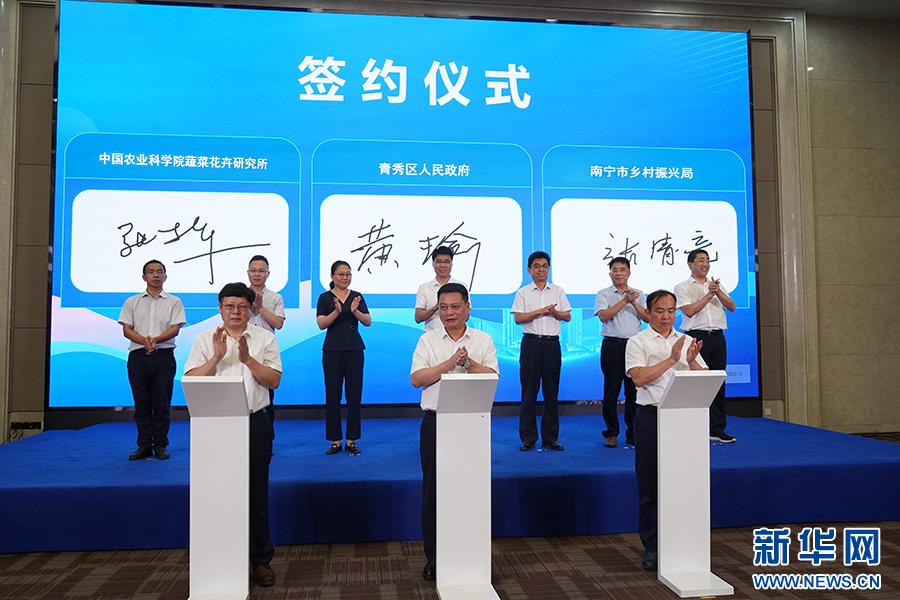 新华网南宁7月26日电 26日,广西南宁市青秀区与中国农业科学院蔬菜花卉研究所签订合作协议,携手共建中国农业科学院蔬菜花卉研究所华南研发中心(以下简称“华南研发中心”)。