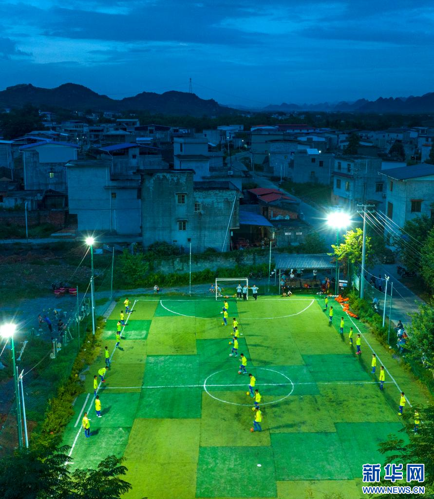 平地屯是位于广西柳州市柳江区穿山镇的一个小山村。8月7日晚,为期近1个月的平地屯暑期公益足球夏令营结束,一场汇报训练成果的足球对抗赛在村里的绿茵场上打响,吸引众多村民观赛。2020年,平地屯的村民组成义务劳动队,为孩子们修建专用足球场,社会爱心人士为他们捐赠了人工草坪、球门、球场照明灯等设施,公益足球教练定期免费为孩子们培训,众人联合起来,给村里喜欢足球的孩子们点燃了绿茵梦想。