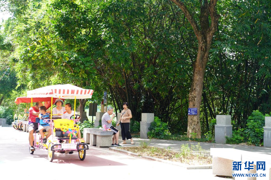 游客在柳州市环江村内骑行(8月8日摄)。新华社记者 赵欢 摄