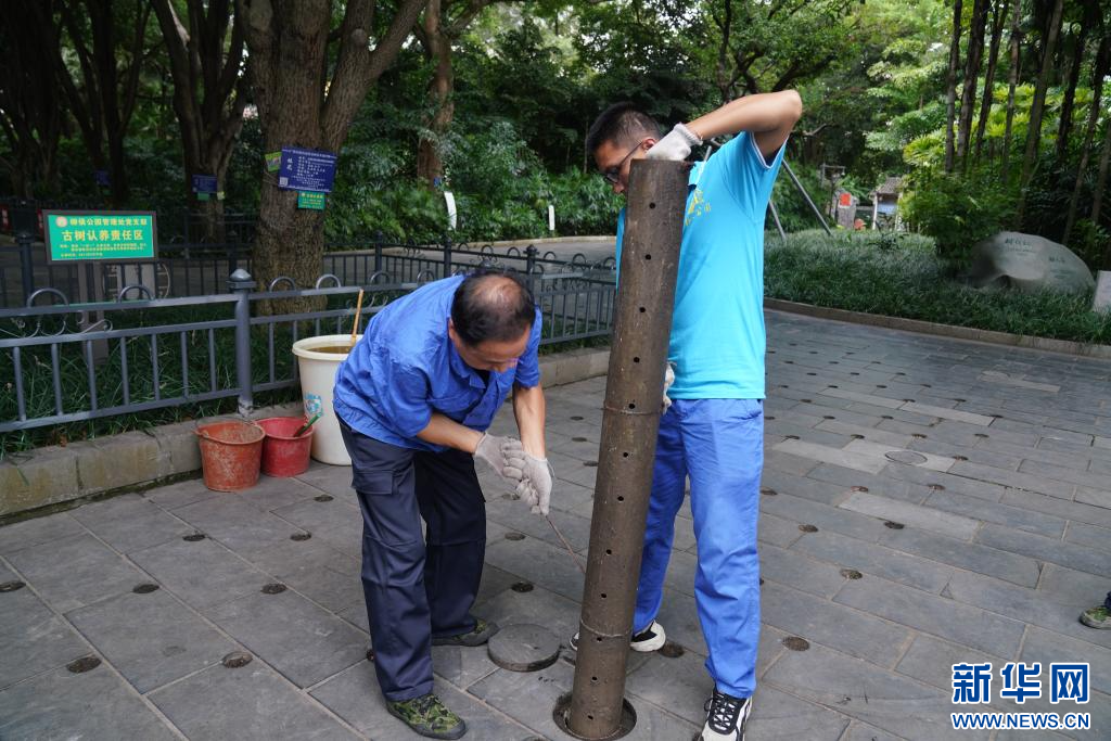 柳州市柳侯公园的工作人员对古树开展施肥复壮工作(8月8日摄)。新华社记者 赵欢 摄