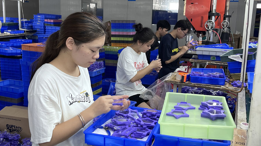 玩具厂负责人表示,欢迎学生们来到玩具厂打“暑假工”,企业会安排比较轻松易学的手工活给他们,让他们增加一份收入,减轻家庭经济负担,同时也会严格按照相关法律法规要求,为学生办理保险、做好培训、支付报酬。(覃杰 覃靖媛 韦耿俊)