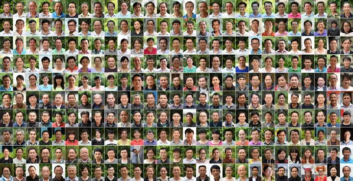 这是2012年至今拍摄的广西20个县130多所大山学校270名老师的肖像(拼版照片)。新华社记者陆波岸 摄
