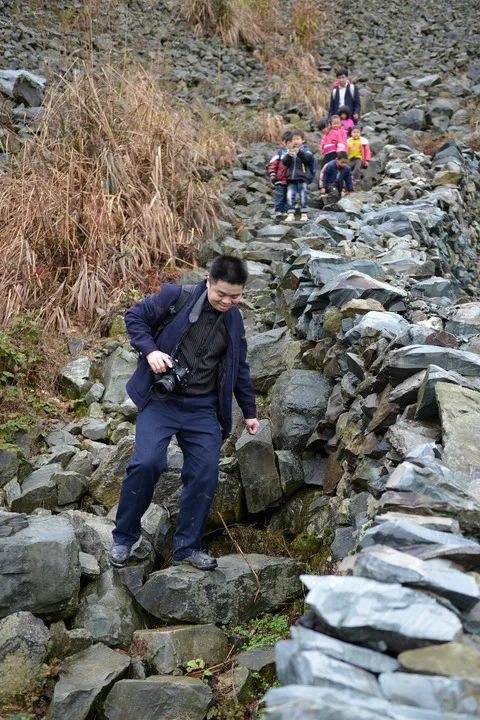 因此,在很长一段时间里,这片大山每天总出现这样的画面:一名男子背着装满书包或一个小孩的背篓,领着一群孩子行走在山间崎岖小路上。余启贵由此被当地村民亲切称为“背篓老师”。