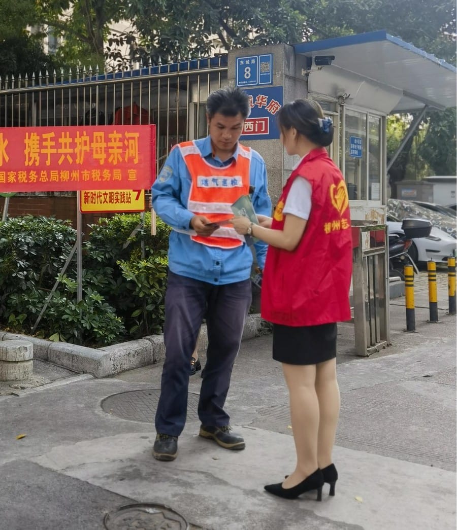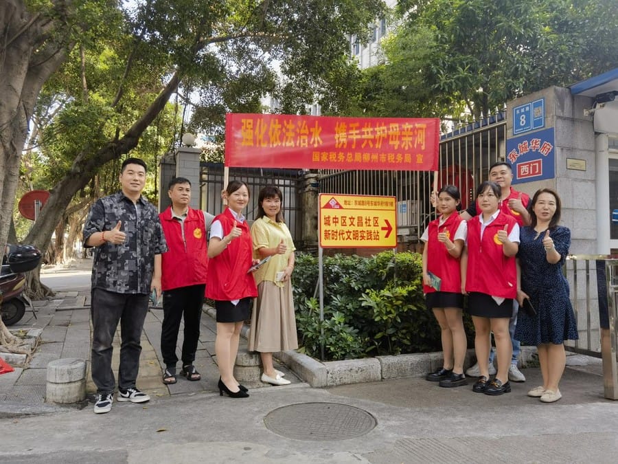近日,柳州市税务局机关服务中心组织单位“滴水蓝”节水宣传志愿者前往柳州市城中区文昌社区开展“强化依法用水 携手共护母亲河”节水护水宣传活动。