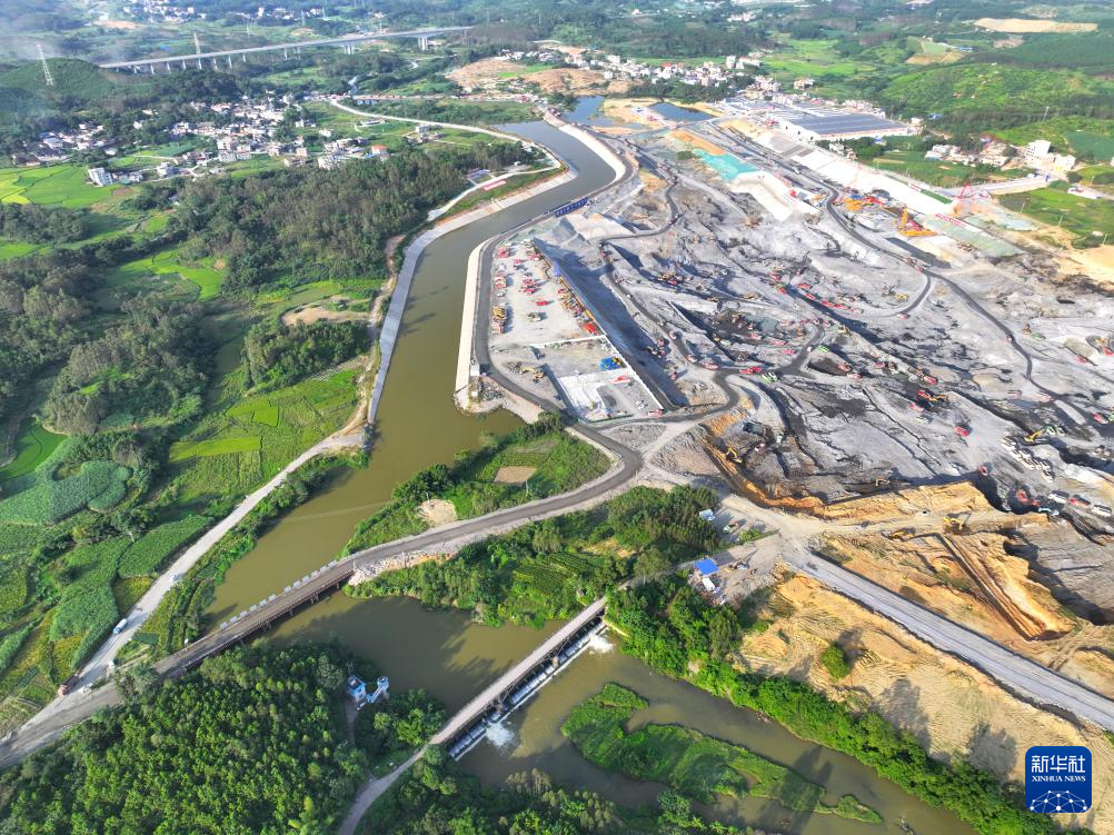 平陆运河企石枢纽建设现场(10月4日摄,无人机照片)。