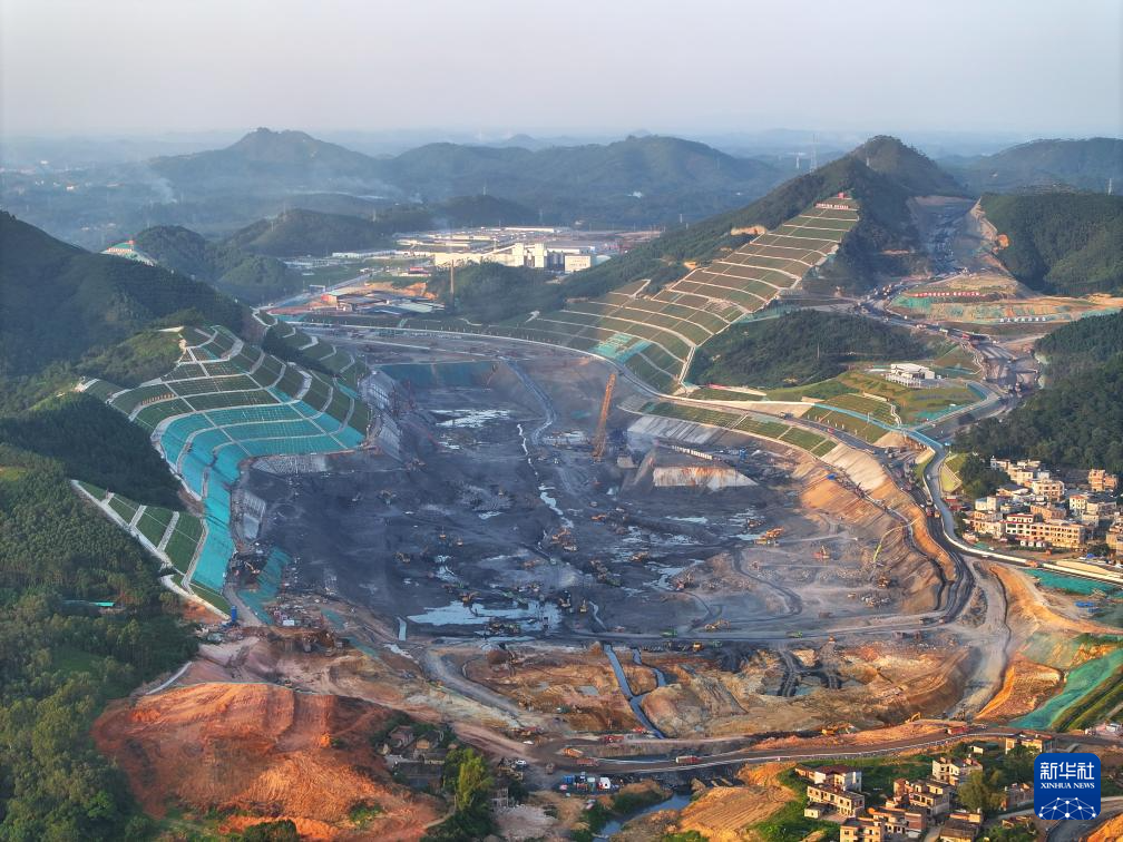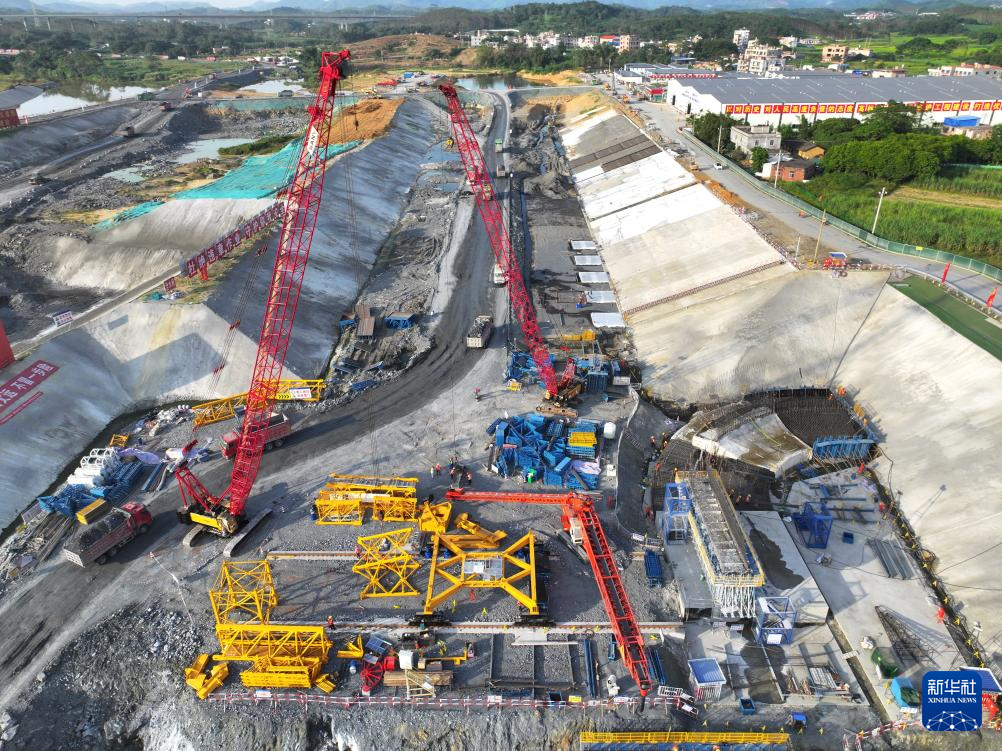 这是10月14日拍摄的平陆运河钦州青年枢纽建设工地(无人机照片)。
