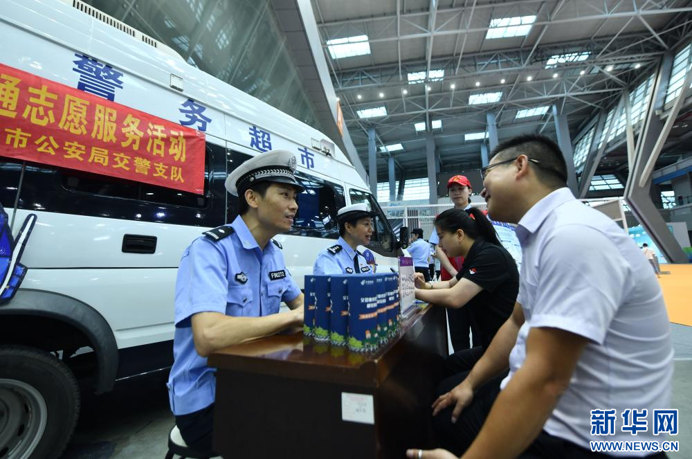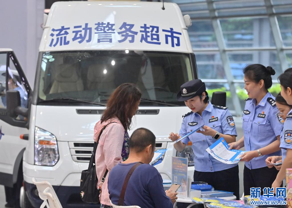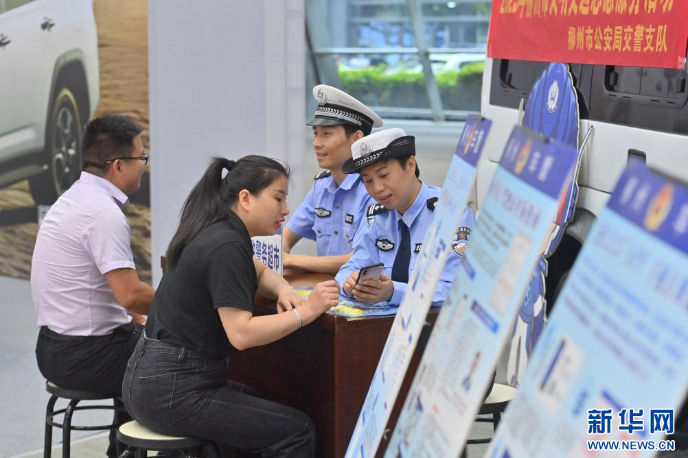 10月19日,在柳州市国际会展中心,市民在“流动警务超市”咨询、办理业务。